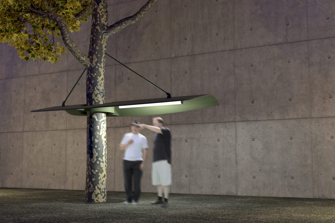 D’autres objets peuvent y trouver leur place dans des configurations de potence ou d’accrochage direct. Cette recherche explore quatre propositions de mobilier, comprenant un lampadaire haut, un abri urbain, une borne d’éclairage végétalisée et un feu signalisation tricolore.