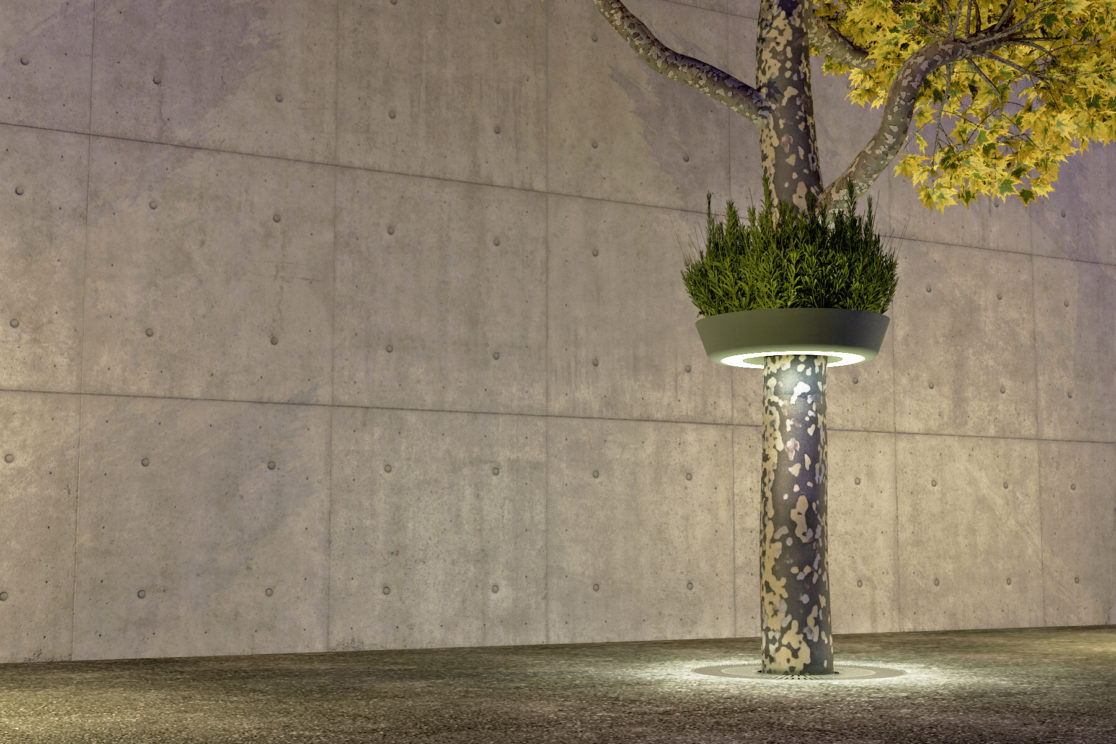 Dans ce projet, l’arbre devient pilier, colonne, piédestal pour l’objet implanté. L’arbre met en valeur l’objet ; L’objet magnifie l’arbre, tel une interaction biologique.