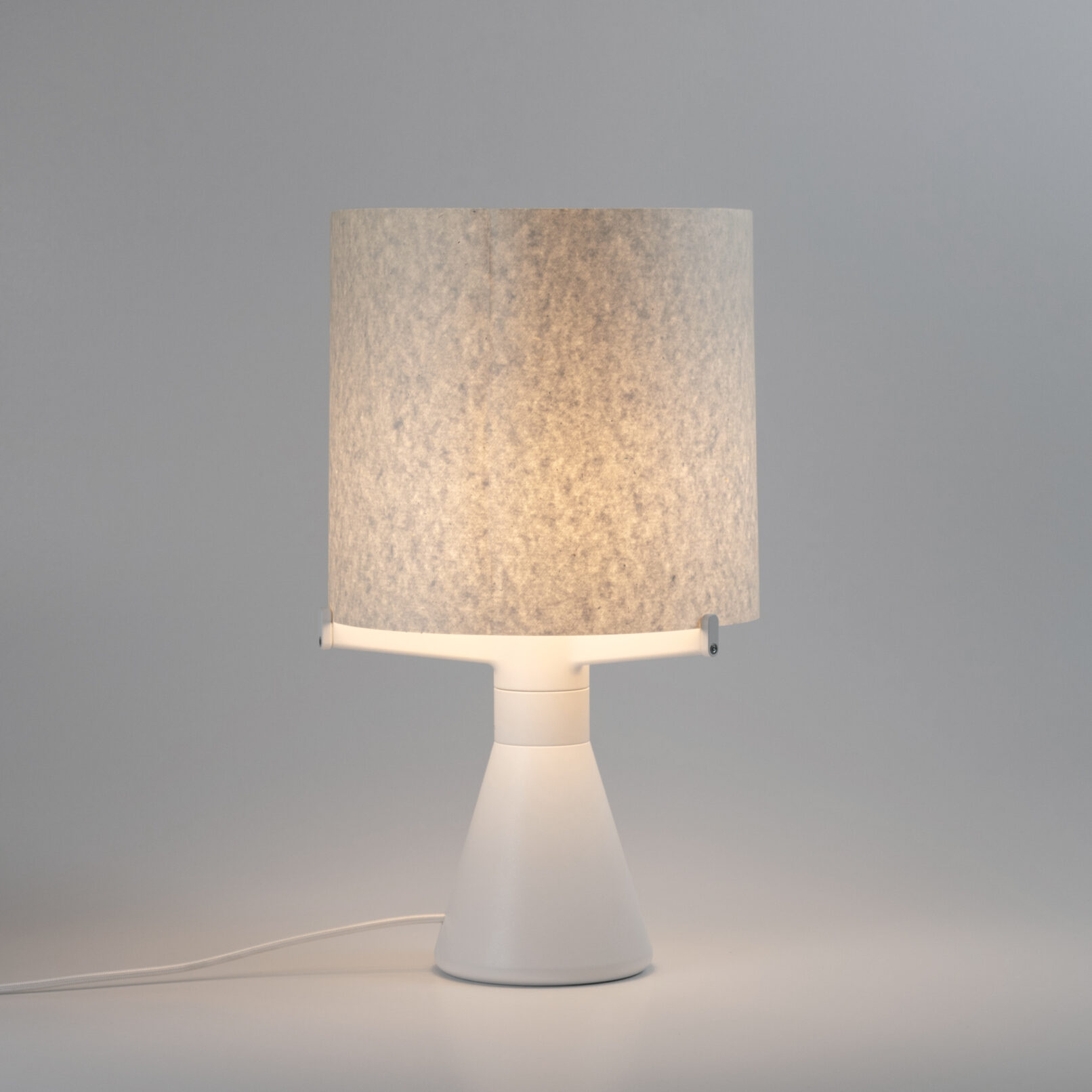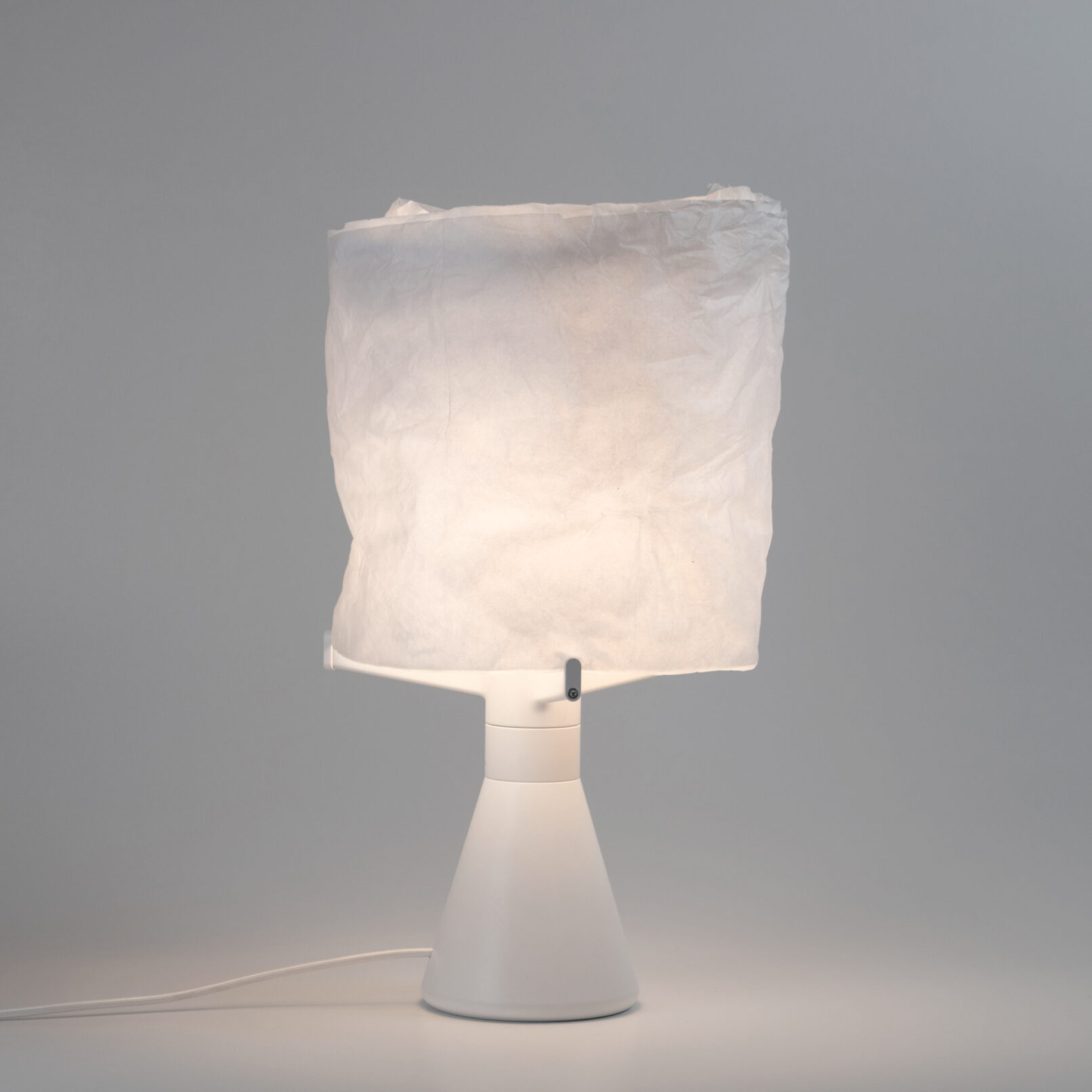 Le système de fixation de l’abat-jour permet de modifier et d’adapter sa propre création pour diffuser la lumière. Papier de soie, Rhodoïd coloré, création en tout genre… Cette lampe n’est qu’un support créatif.