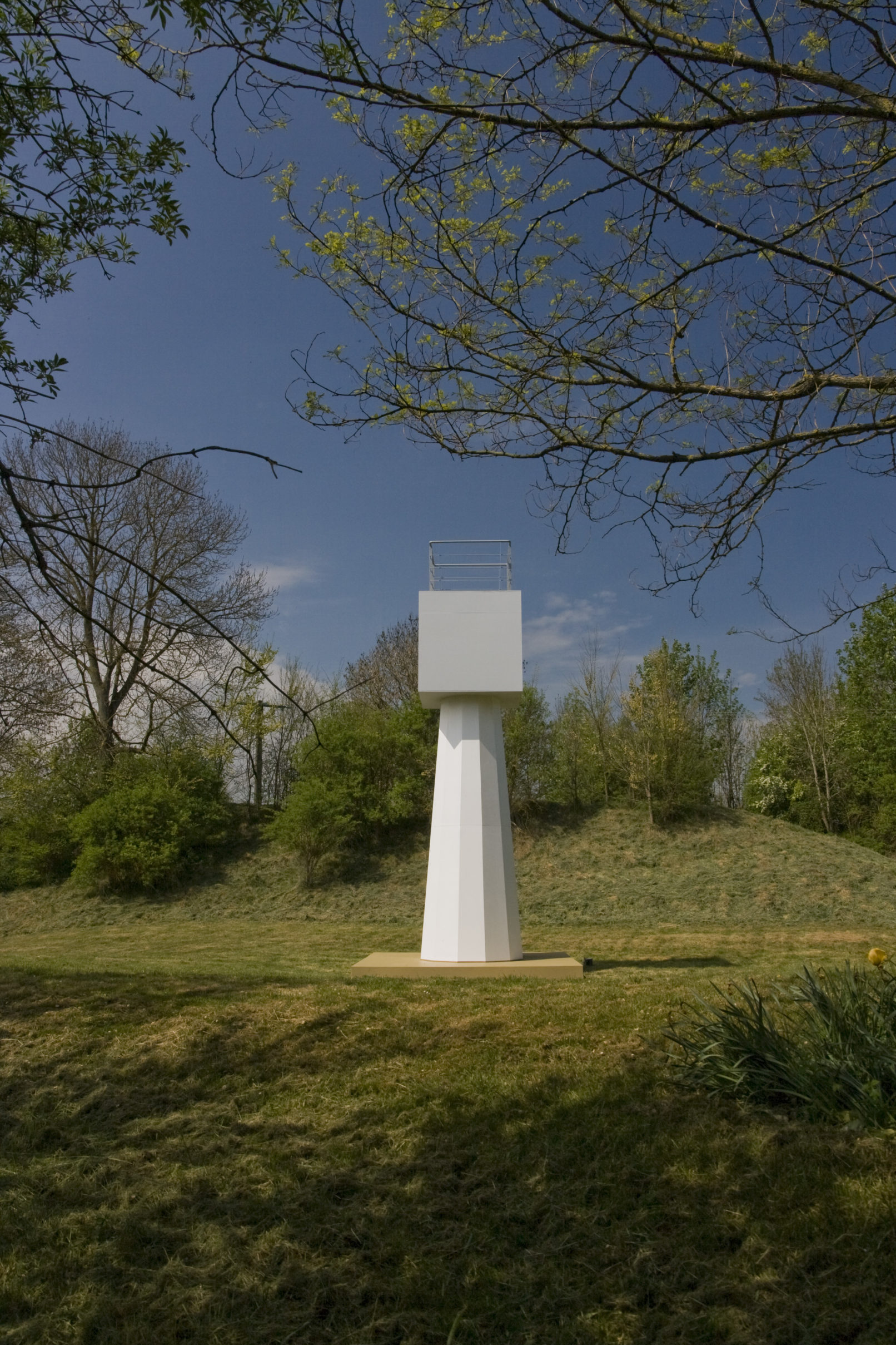 La structure aux allures de phare et de tour de contrôle est implantée sur le site historique de Marsal en Moselle, une ancienne saline et ancienne place forte, fortifiée par Vauban.