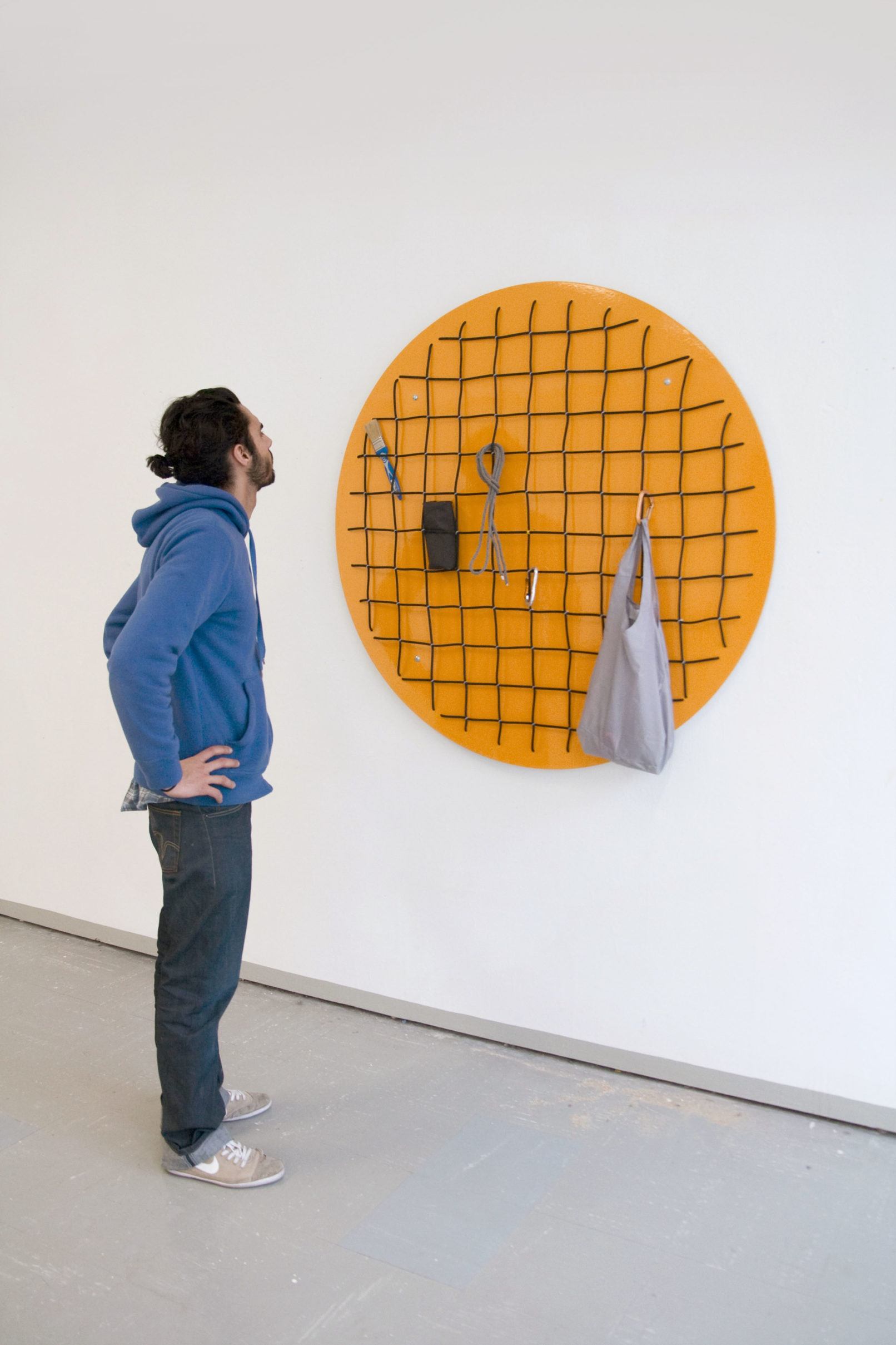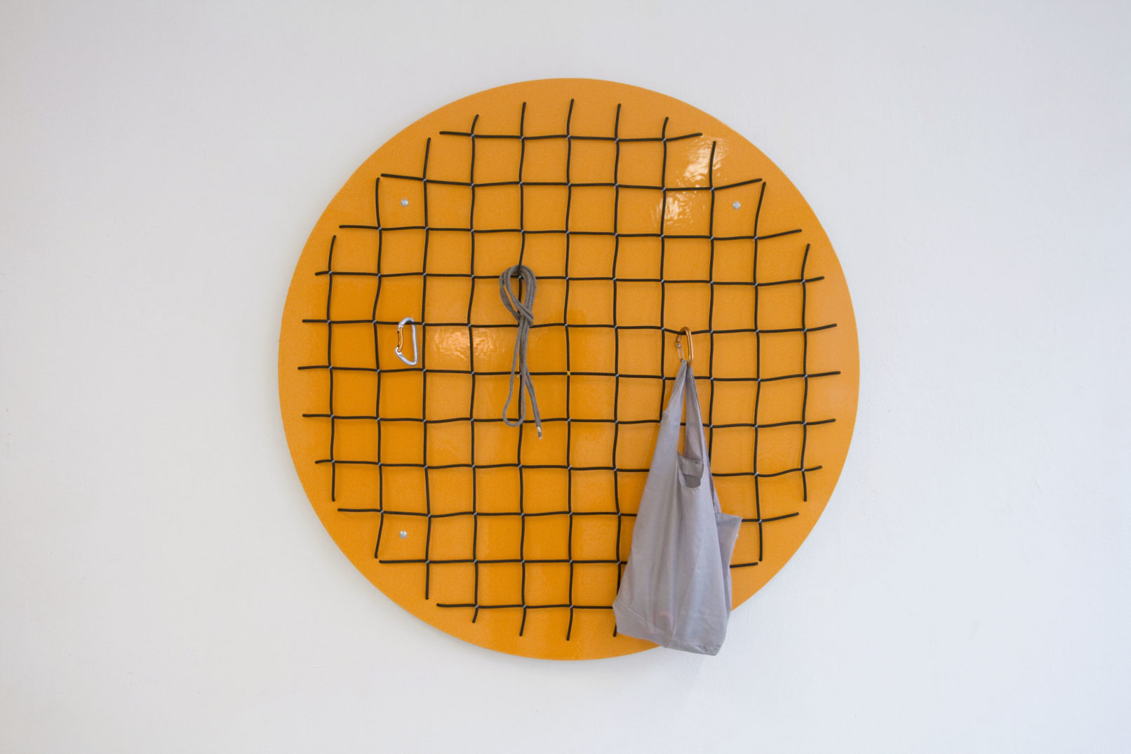 Ce projet est un mobilier «fourre-tout» composé d’une planche et d’un tressage de corde élastique. Il joue sur l’interaction entre l’objet et l’image